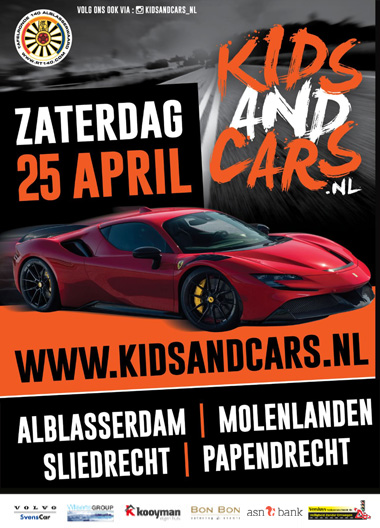 Kids and cars is een toertocht met een groot aantal exclusieve (sport)auto’s waarbij kinderen die het minder goed hebben en kinderen die vaak in een ziekenhuis moeten verblijven (om welke reden dan ook) als passagier meegenomen worden. Die kinderen tijdens deze rondrit een lach bezorgen is wat we willen bereiken. Tijdens deze rondrit worden vier gemeenten aangedaan, te weten: Alblasserdam, Molen- waard, Sliedrecht en de rit eindigt in Papendrecht. De (financiële) meeropbrengst van de tocht komt volledig ten goede aan een goed doel.